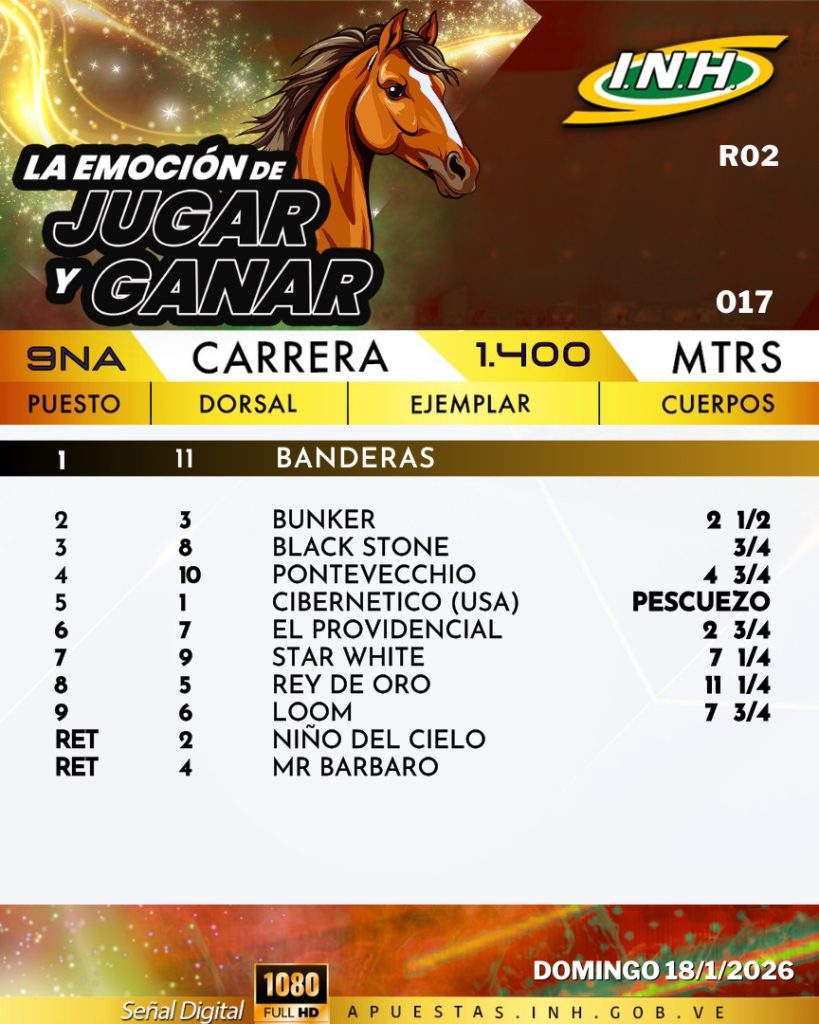 Al giro de la última curva, cuando varios rivales comenzaron a ser exigidos, Banderas respondió con solvencia. Su jinete encontró el espacio justo y, al pedirle el remate, el ejemplar cambió de mano con autoridad, pasando a dominar la prueba con una aceleración decisiva. Al final fueron más de dos cuerpos los que logró sobre Bunker, mientras Black Stone, Pontevecchio y el importado Cibernético.