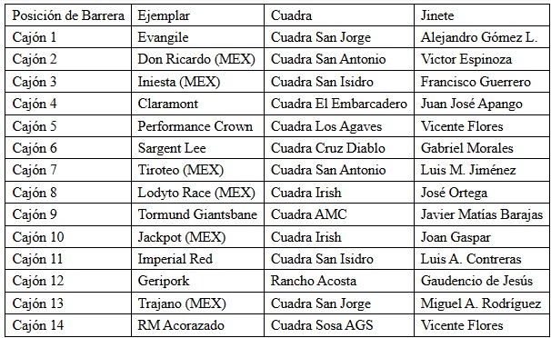 En la ceremonia,la conductora Marta Mercado y la cantante Abby Cardiel fueron las encargadas de sacar el nombre del ejemplar y el cajón desde donde partirán los cuadrúpedos para intentar conseguir la victoria en la complicada carrera pactada a milla 3/16 (mil 911.10 metros).