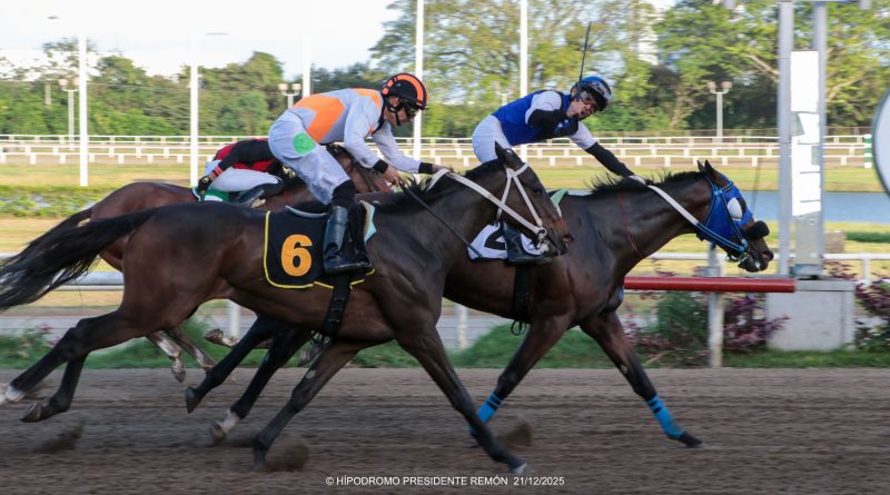 Nota Oficial por Miguel Gómez.- La potranca Ataviada resistió con valentía las acometidas finales de Gold Basin, por línea exterior, y Aradia, por la parte interior, para adjudicarse el Clásico