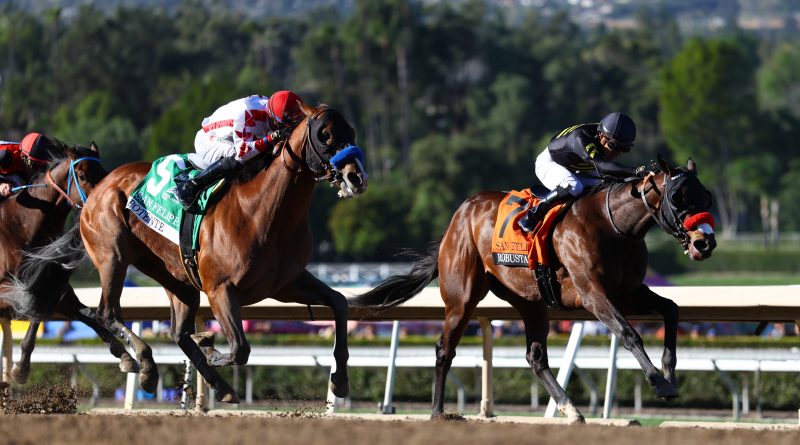 Leer másARCADIA, CA (7 de marzo de 2026)—Tras ganar su debut en velocidad el mes pasado en Santa Anita, Potente, con una apuesta de $2.4 millones, superó a Robusta (67-1), en