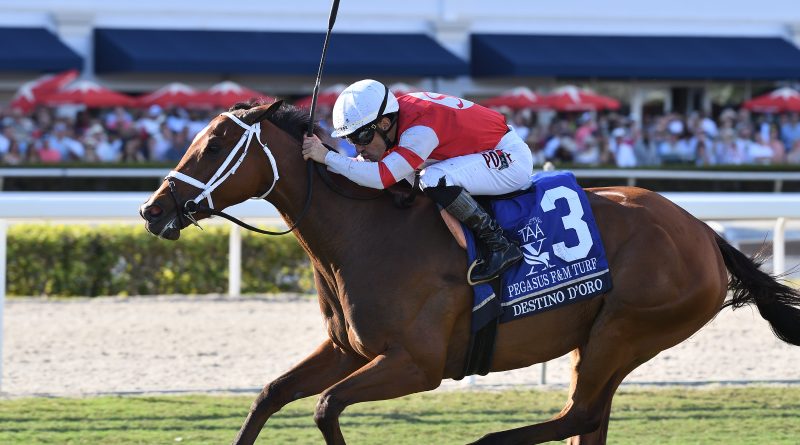 Leer másHALLANDALE BEACH, FL – Destino d’Oro de Steve Landers Racing LLC cayó fuerte al final para llevarse la Pegasus Filly And Mare Turf (G2) de $500,000, llegando al final justo