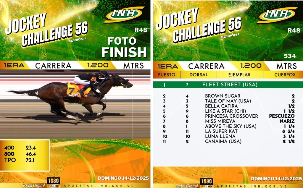 La RinconadaVenezuela FLEET STREET retorna a la senda ganadora en el Clásico Balsamino Moreira diciembre 14, 2025 Juan Carlos Feijoó G. La norteamericana hija de STREET BOSS se impuso tras par de derrotas en el Clásico Balsamino Moreira (G1), con la monta de Jhonatan Aray y entrenamiento de Carlos Luís Uzcátegui. Victoria 7 en 15 salidas. INFORMACIÓN EN DESARROLLO-