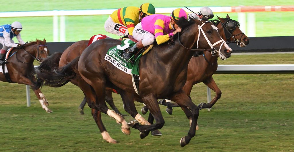 HALLANDALE BEACH, FL – Grand Sonata, de Whisper Hill Farm, sin victorias en sus 10 carreras anteriores, puso fin a su larga sequía el sábado con una victoria en el Mac Diarmida Stakes (G2) de $225,000 en Gulfstream Park.