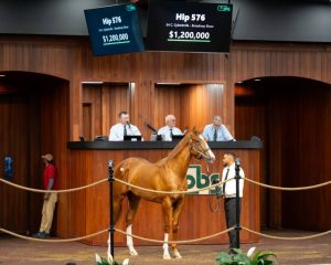 Momentos después de que la potranca hija de *Jackie’s Warrior* se hiciera un lugar en la historia de OBS, el Hip 576 —un potro castaño hijo de *Cyberknife*, consignado por de Meric Sales— se convirtió en el segundo ejemplar en alcanzar el umbral de las siete cifras durante la sesión, al venderse por 1,2 millones de dólares a la sociedad conformada por West Point Thoroughbreds, Mike Talla, LEB y John Sadler (en calidad de agente).