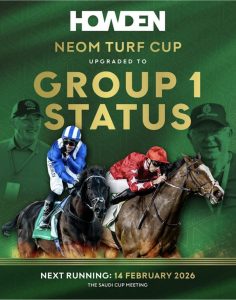 La Howden Neom Turf Cup se sitúa ahora junto a la Saudi Cup, dotada con 20 millones de dólares, como evento de Grupo 1, tras haber recibido la carrera más rica del mundo ese reconocimiento antes de su tercera edición en 2022. La Obaiya Arabian Classic completa el trío de competiciones de primer nivel que se celebran el día de la Saudi Cup.