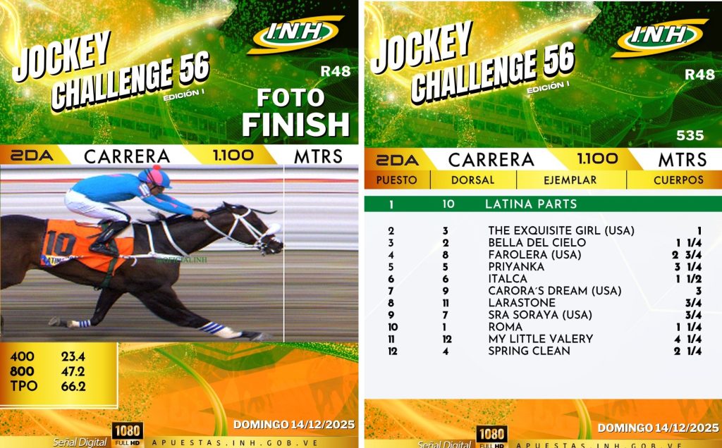 El joven Humberto Correia Jr. logró la primera victoria de su carrera y de Grado 1, tras la victoria de la hija de KING SERAF que logró el triunfo en el Clásico Senegal (G1) . La conducida por Yoelbis González dejó crono final de 66″2 para los 1100 metros.