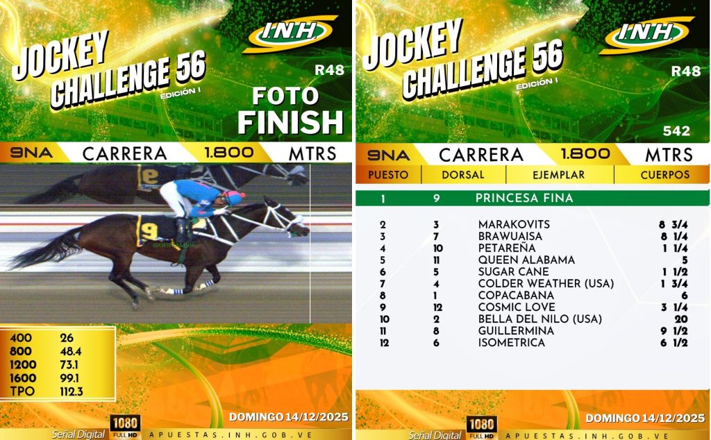 La RinconadaVenezuela PRINCESA MIA de punta a punta en el Clásico Ramón Alfredo Domínguez diciembre 14, 2025 Juan Carlos Feijoó G. Con la impecable monta de Jhonatan Aray, la presentada por Humberto Correa Jr. unió partida con llegada en el I Clásico Ramón Alfredo Domínguez (G1) disputado en La Rinconada. INFORMACIÓN EN DESARROLLO.