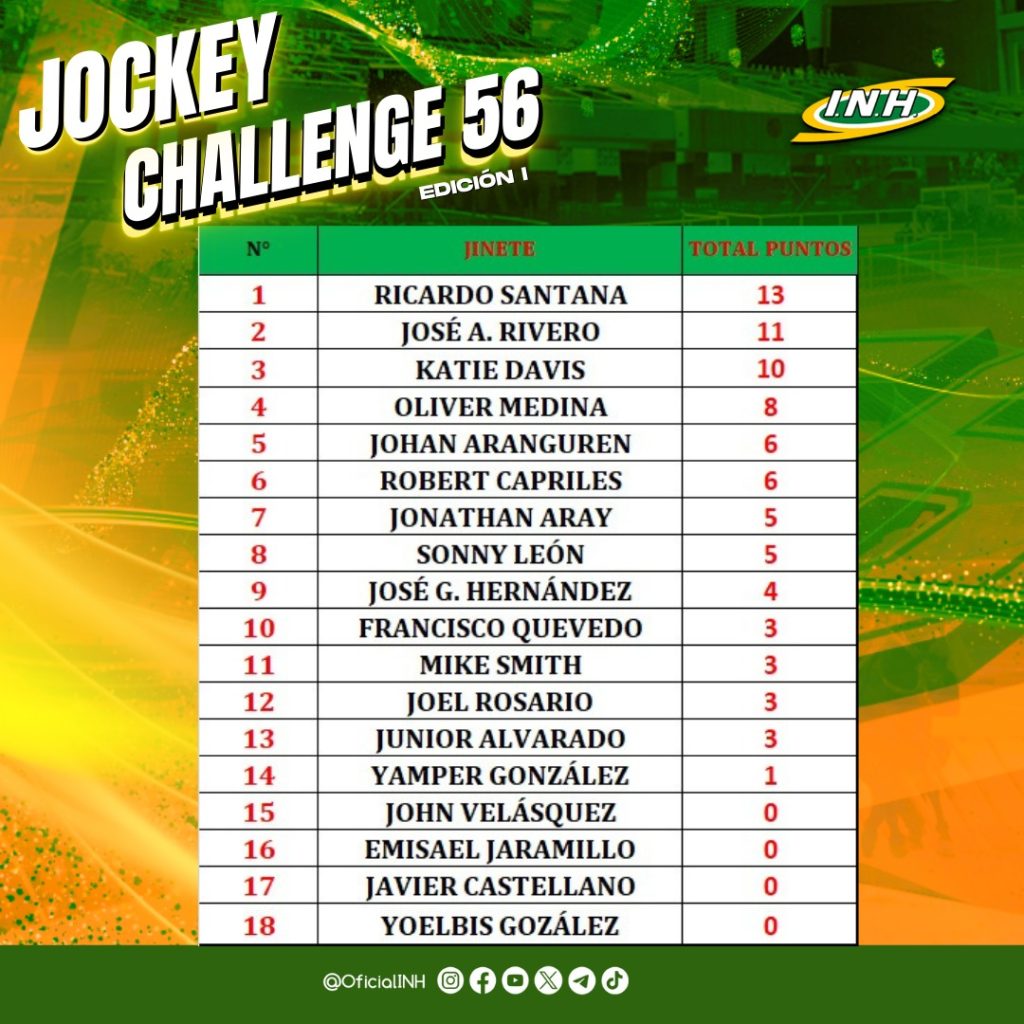 La RinconadaVenezuela Ricardo Santana Jr. gana el primer Jockey Challenge 56 diciembre 15, 2025 Juan Carlos Feijoó G.