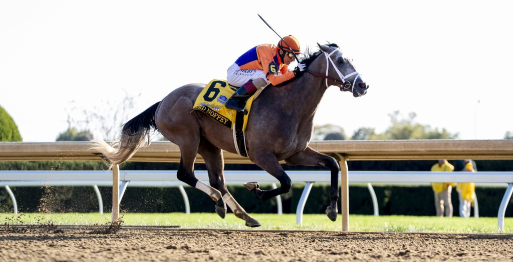 Breeders CupEstados UnidosInternacionalKeeneland TED NOFFEY rumbo al Eclipse Award tras ganar el Breeders´ Futurity octubre 4, 2025 Juan Carlos Feijoó G. El tordillo del Spendthrift Farm, mantuvo su invicto en trío de actuaciones al imponerse en el Claiborne Breeders Futurity (G1) en Keeneland con la monta de John Velázquez y entrenamiento de Todd Pletcher. INFORMACIÓN EN DESARROLLO. Foto: Jessica Morgan/Eclipse Sportswire/CSM
