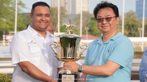 El Administrador General de Acodeco, Ramón Abadi, entregó el trofeo del triunfo al propietario Víctor Hung, representante del Stud Kung Hey, y fueron acompañados por Saúl Jaramillo, Roberto Castillo, Johanna Aguirre, Joseph Delgado, Diego Morales, Lorena de Chacín, Joany Chávez, Vernon Anderson, Omar Medina, Dylan Bartuan, Arnulfo Barroso, Carlos De Oliveira, director de Operaciones Hípicas – Panamá.